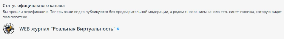 Сегодня Rutube прислал мне письмо, что я прошел верификацию и мой канал получил "галочку".