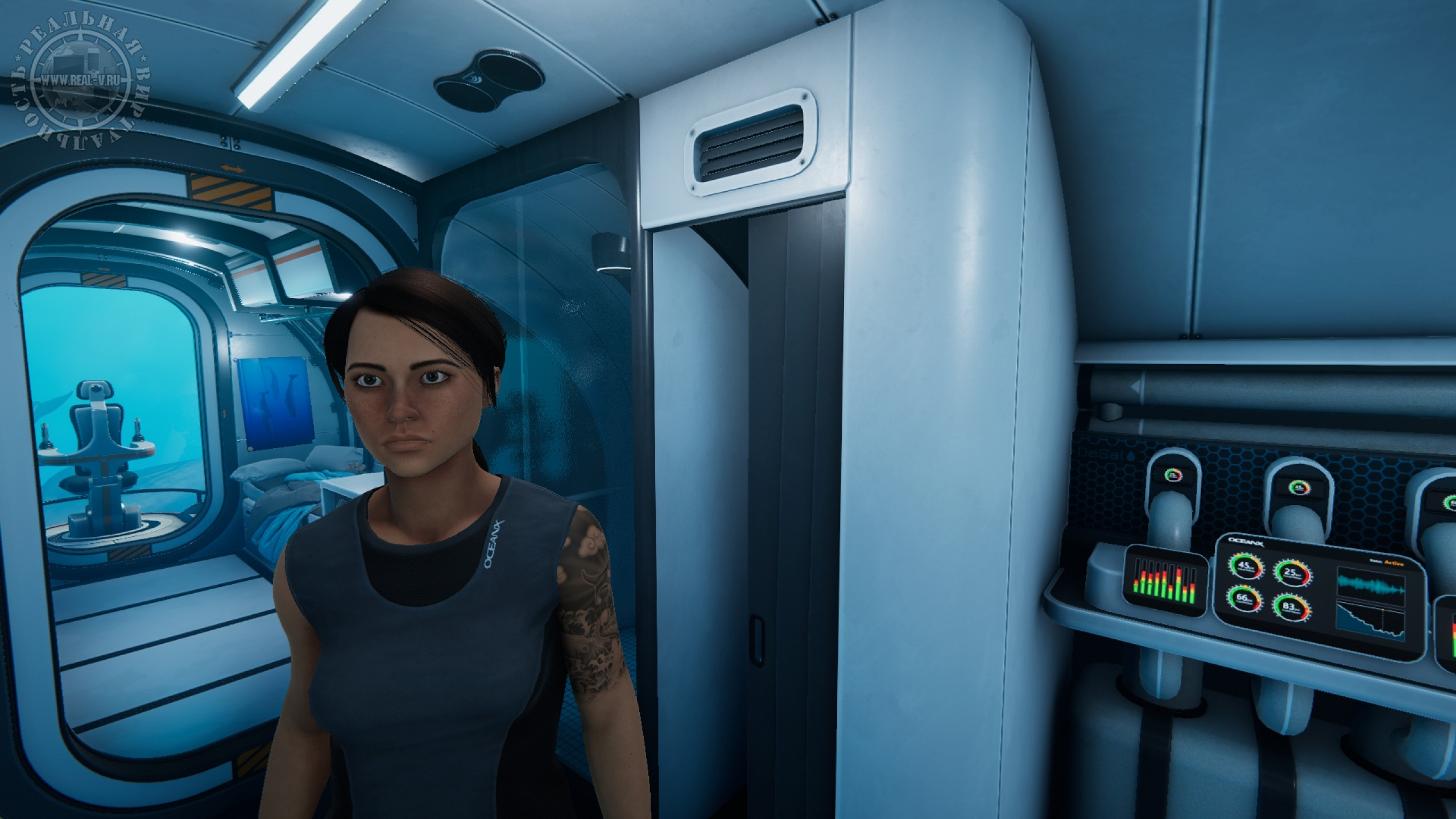 Графика средняя, но красивая, видно, что старались, но и изысков нет. Над моделями подводных обитателей была проведена серьезная работа, выглядят они даже лучше, чем главная героиня. С каждым возвращением в каюте появляются новые и исчезают старые предметы, относящиеся к целям экспедиции. Бонусом за прохождение будут 16 видеороликов BBC Studios и OceanX Media. Любителям документальных фильмов о природе должно понравится, познавательно. На подлодке есть плеер с различными композициями, так что с выбором музыки между погружениями проблем не возникнет. В локализации частично пропущены субтитры или фрагменты текста, но это не столь важно, общий смысл понятен и так.