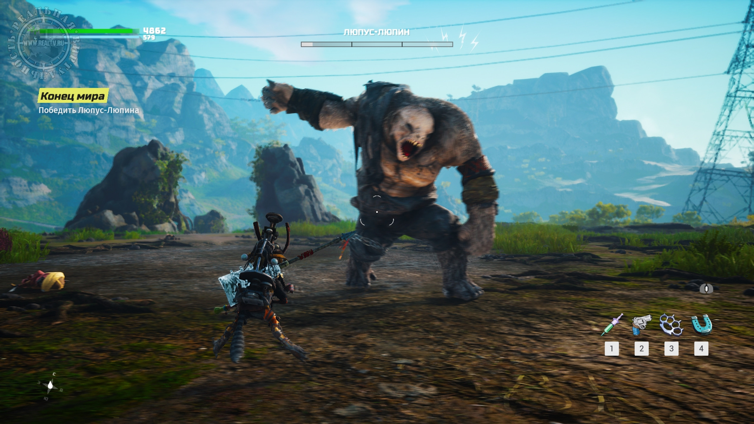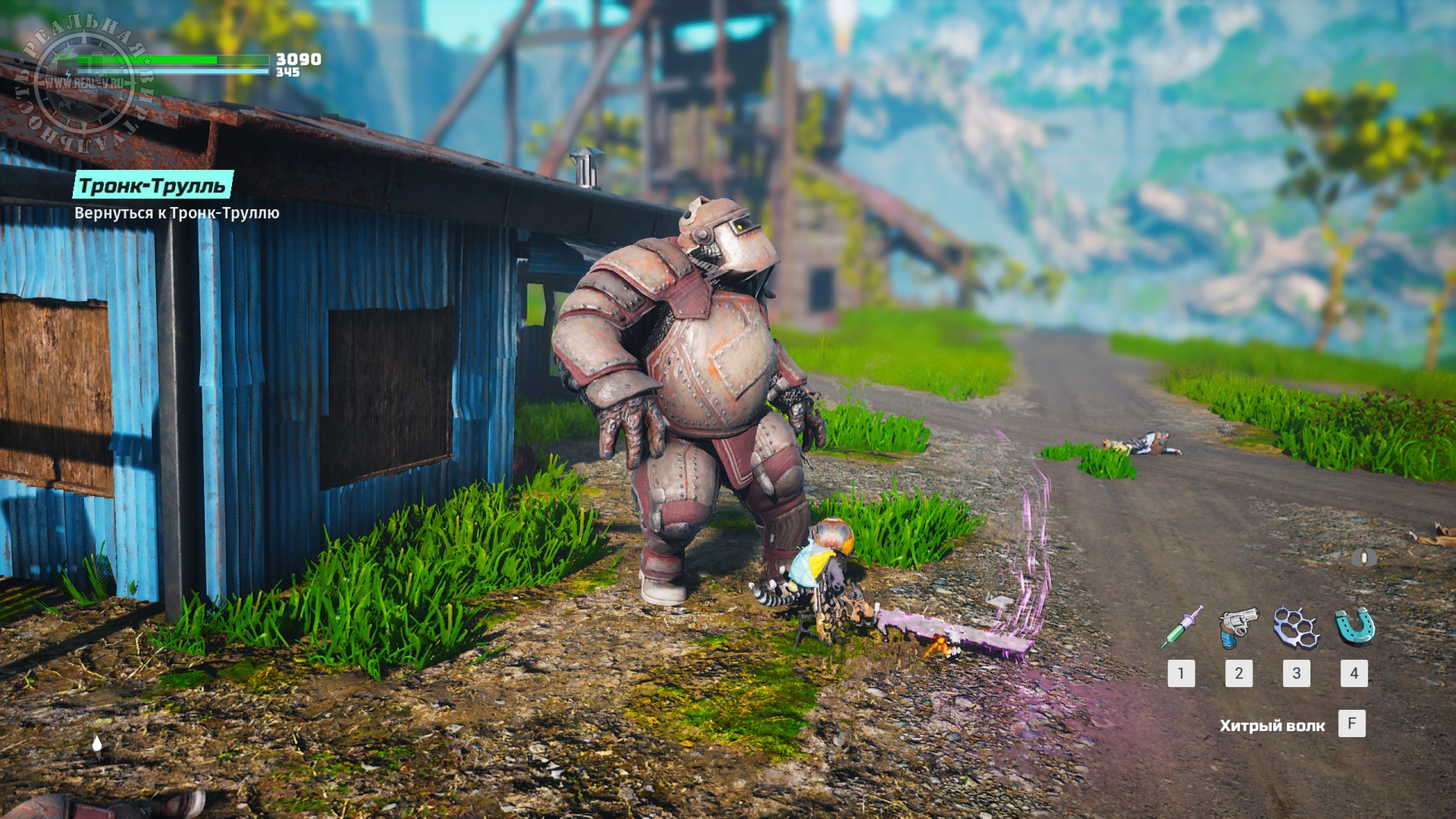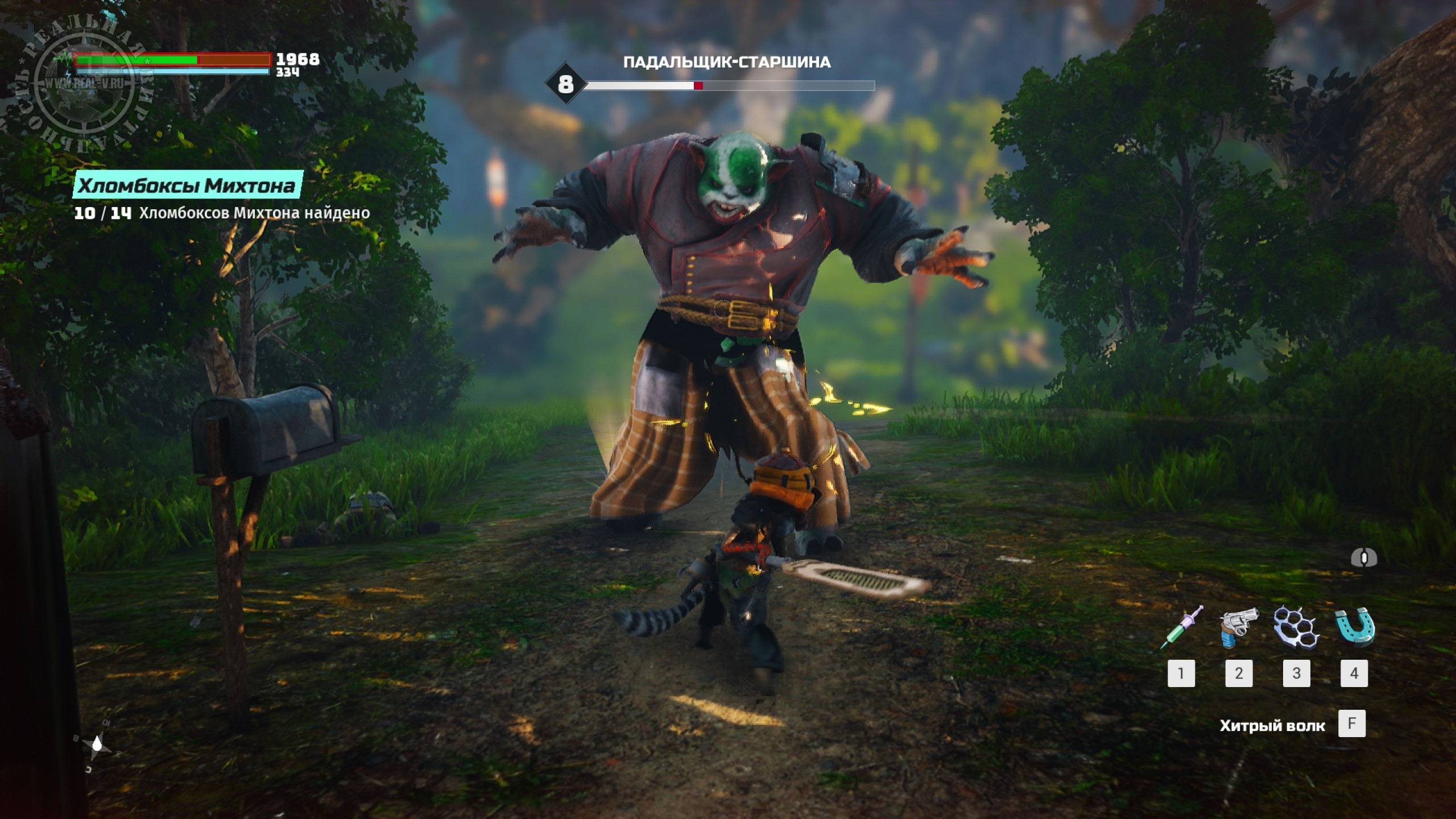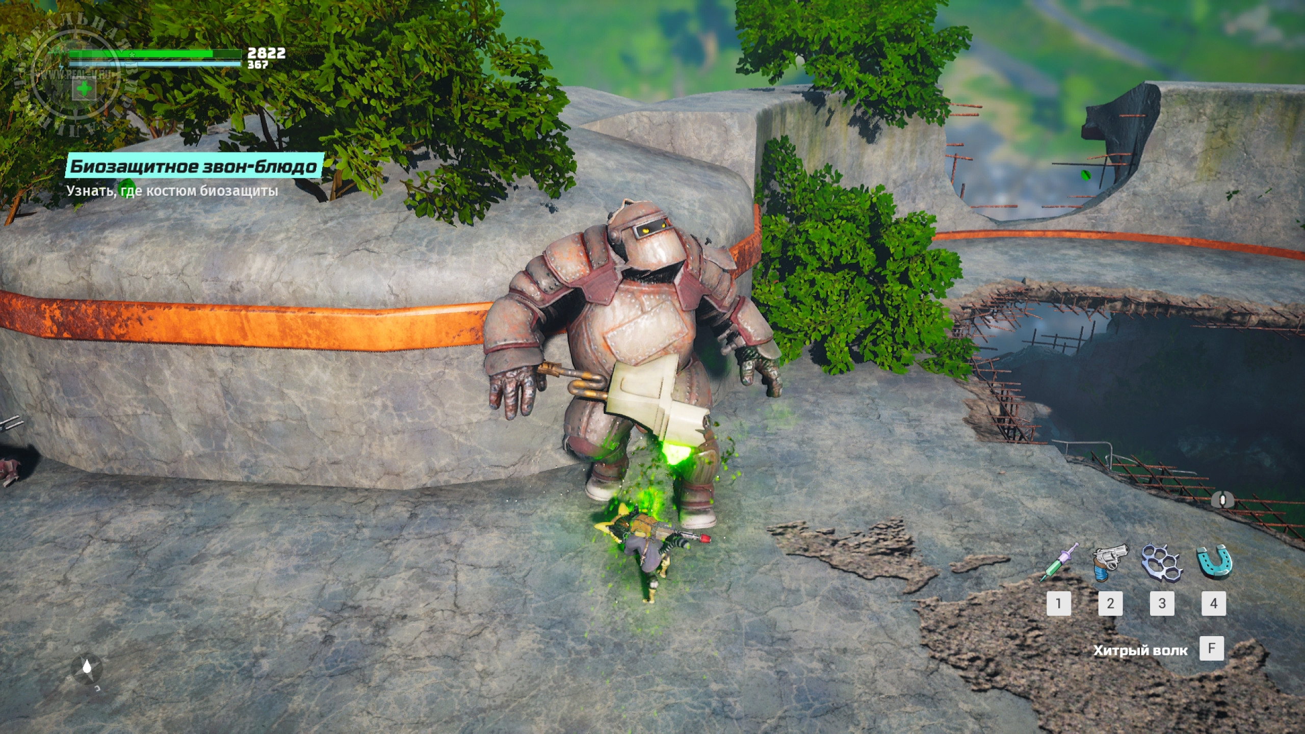 Оружие делится на холодное и огнестрельное, но боевая система позволяет сочетать атаки разными типами вооружения, проводя занятные комбинации. Отдачи нет, ни удары, ни выстрелы не ощущаются, что портит впечатление. Мелкую живность проще резать, бить или рубить, а вот мощных врагов лучше отстреливать на расстоянии. Особенностью Biomutant является то, что большую часть вооружения необходимо создавать из подручных материалов. Находя или покупая запчасти, а потом комбинируя их, можно собрать поистине смертоносные клинки и "пушки", тем более, если улучшать их на верстаках. К тому же есть свойства, типа огня или электричества, наносящие дополнительный урон. Встречаются и готовые экземпляры, например кулак или фракционное оружие, но в какой-то момент оно оказывается слабее собранного собственноручно и теряет свой смысл, как и то, что удается найти, выполняя побочные квесты.