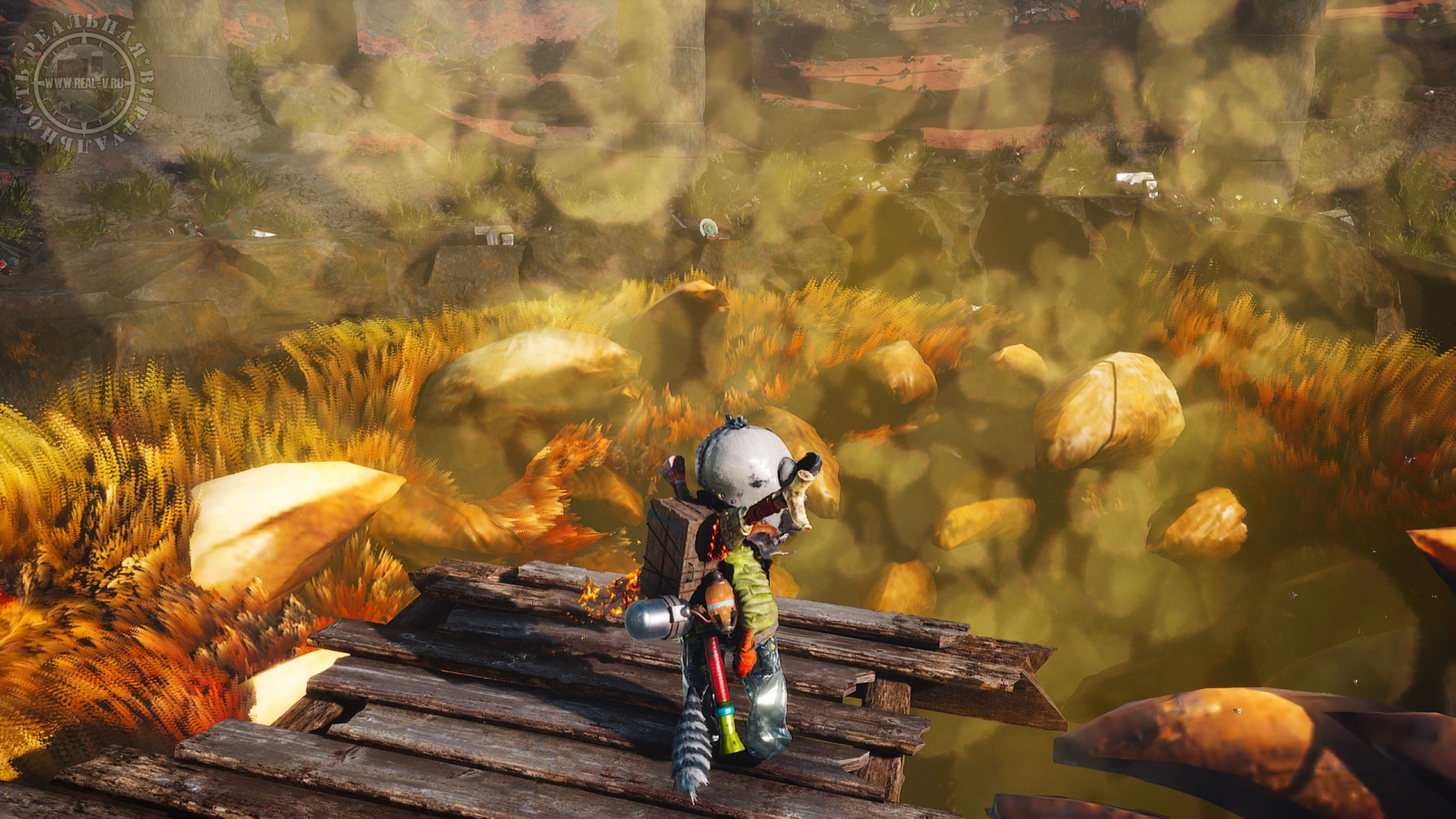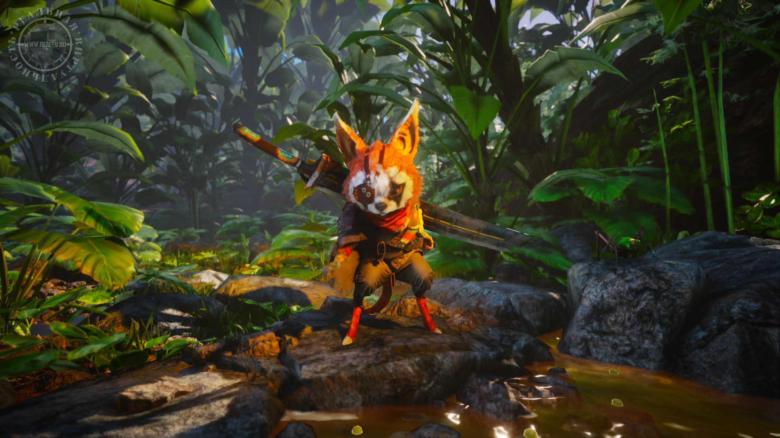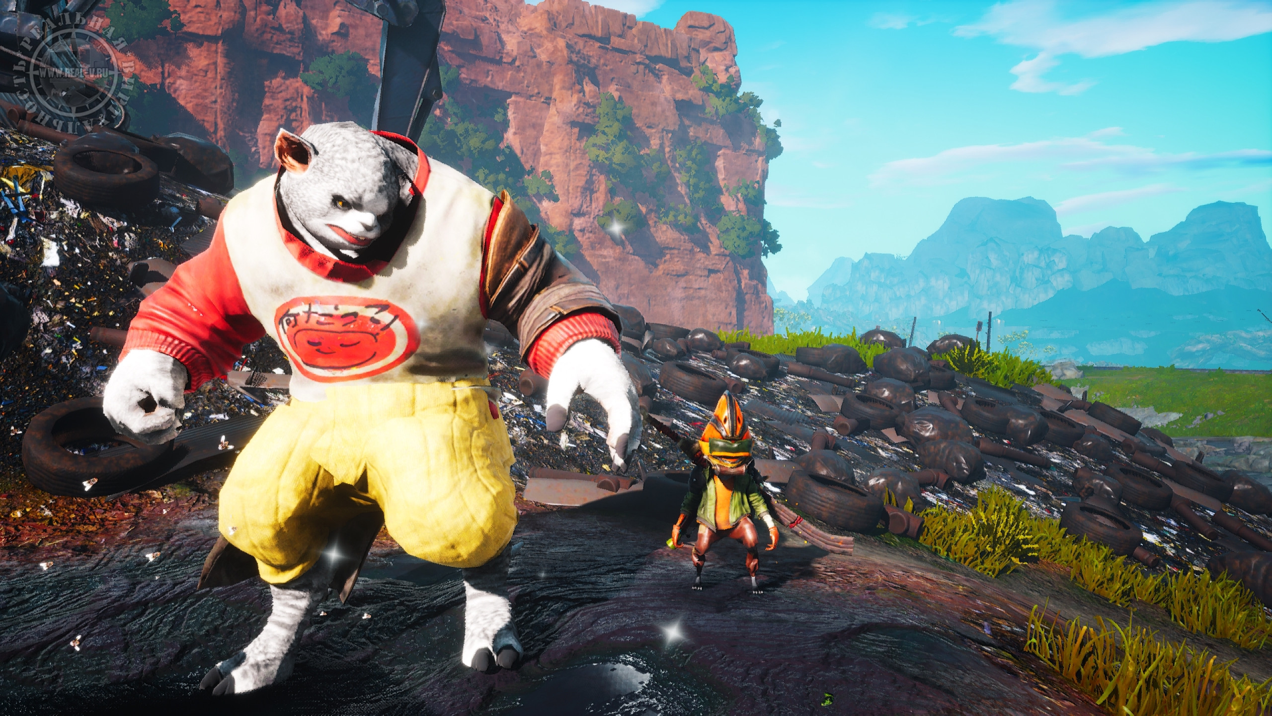 Игра создана на движке Unreal Engine 4 и в целом смотрится неплохо и стильно, а пейзажи впечатляют. С моделями персонажей не все так "гладко", их не назвать красавцами, да и шерсть оставляет желать лучшего. Разумеется, шерстяной покров технически сложно воссоздать, но кто-то идет на "уловки", чтобы он выглядел симпатичней, а в Biomutant на это решили "закрыть глаза". Оптимизация хорошая, просадок FPS я не заметил, но на стыке локаций случаются тормоза на секунду-другую. Критичных глюков или багов нет, тем более что игра уже имеет версию 1.5.1, и, вероятно, будут выходить новые патчи. Музыкальное сопровождение отлично дополняет атмосферу. Локализация полная и качественная, включая озвучку, но бывают резкие обрывы фраз или кат-сцен "на полуслове". В тексте практически нет ошибок и опечаток, в переводе есть отсебятина и придуманные словечки, впрочем, как и в оригинале, что привносит ощутимую долю несерьезности и "детскости".