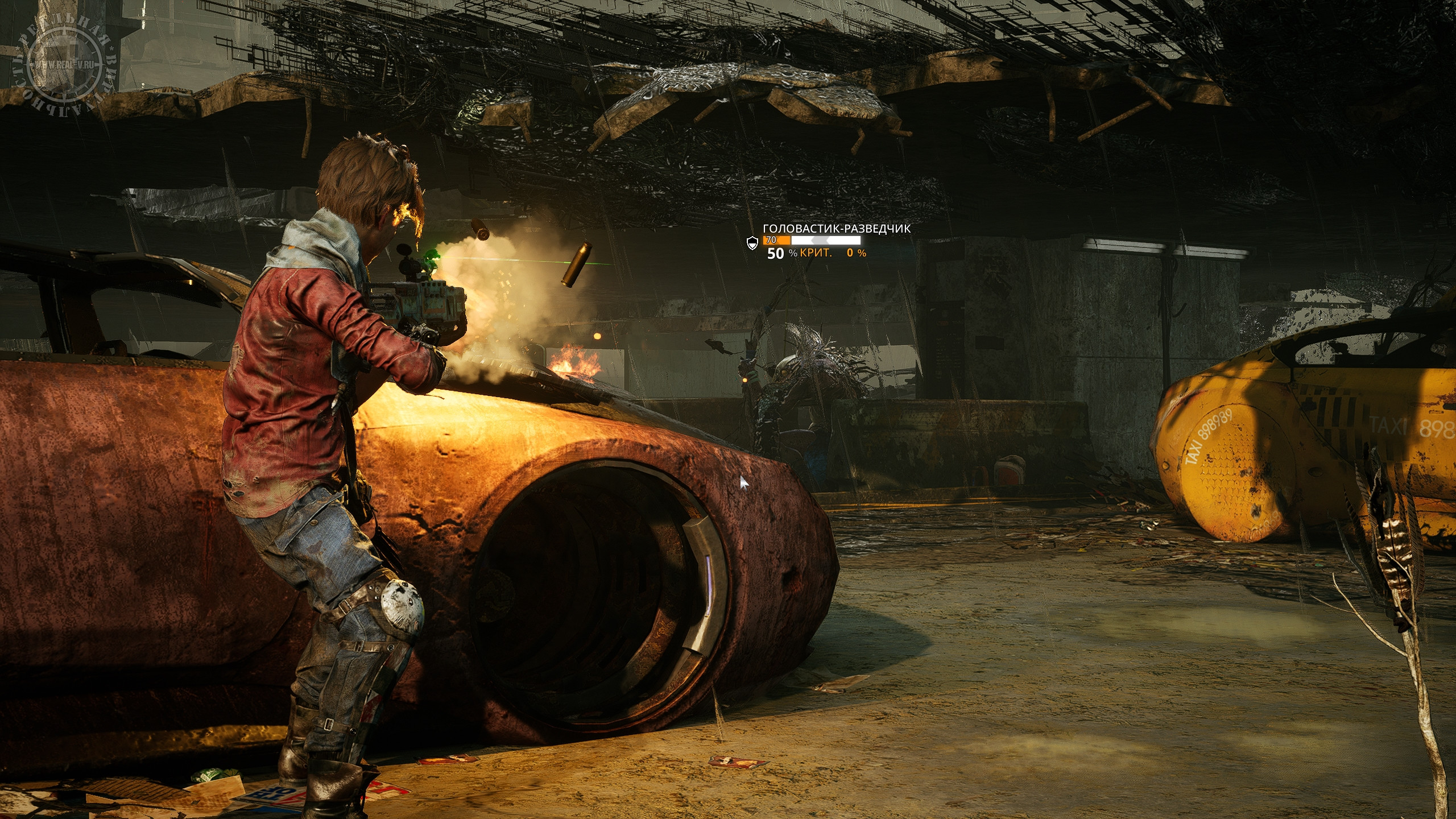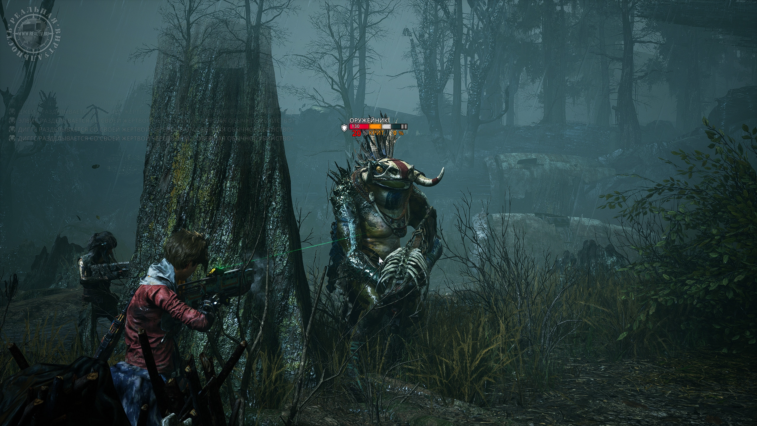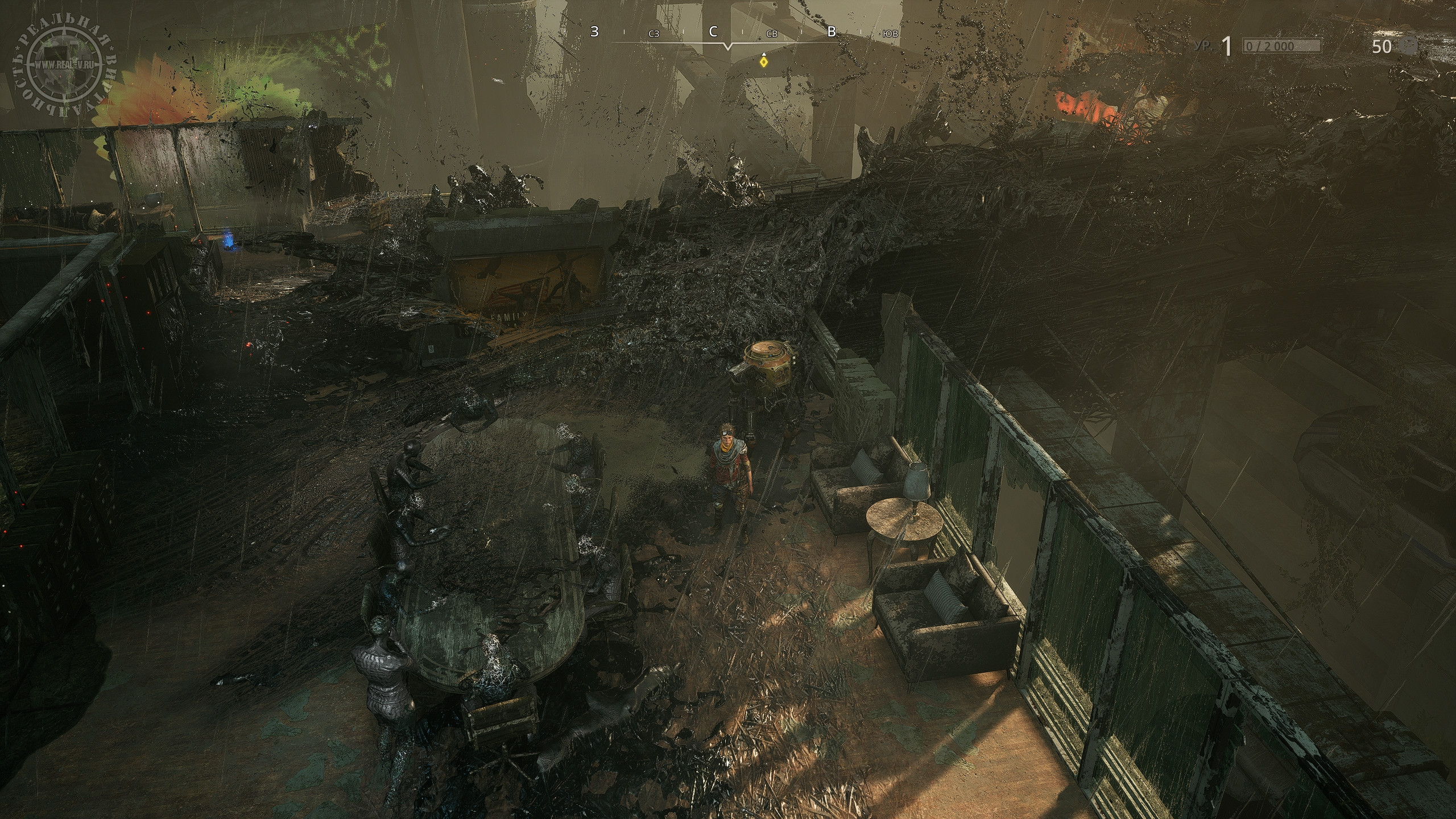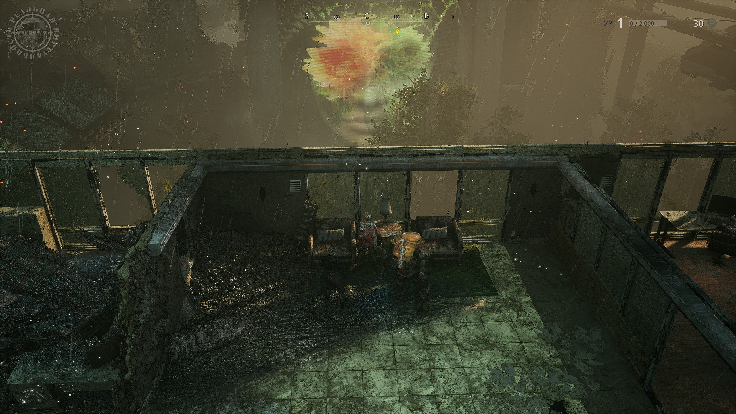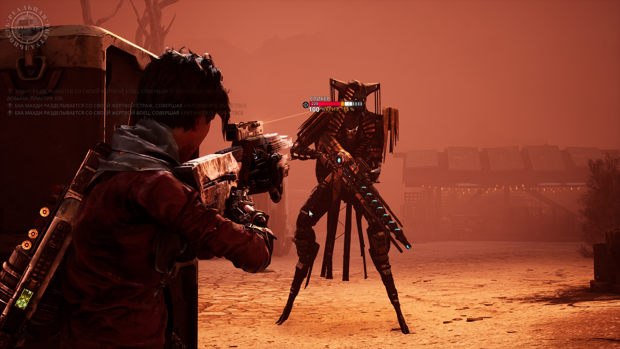 Оружие можно покупать у двух торговцев за местную "валюту" – пластик или находить на локациях, а о боеприпасах заботиться не требуется, они, похоже, бесконечные. Выбор вооружения не так уж богат, есть всего четыре вида – штурмовые и снайперские винтовки, дробовики и оружие с отскоком. Последнее интересно тем, что его снаряды отскакивают от объектов, позволяя выстраивать траектории выстрелов так, чтобы поражать противников, прячущихся за укрытиями. Урон и прочие характеристики зависят от модели и уровня "пушки", а заодно у каждого оружия имеются особые свойства, дающие определенные бонусы, которые также добавляют прицелы или модификаторы. Для перчаток тоже есть модификации типа генераторов и микросхем. Владеющие ими могут пользоваться силами Миазмы, а для получения новой атаки необходимо взаимодействовать со смерчами. Постепенно персонажи освоят атаку электричеством, призыв разных существ в помощники или телепортацию, но для их использования потребуется энергия, которую надо вначале накопить или израсходовать энергетическую ячейку.