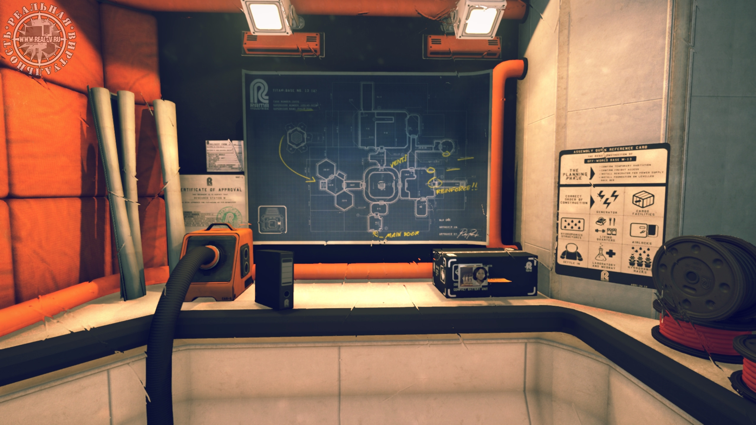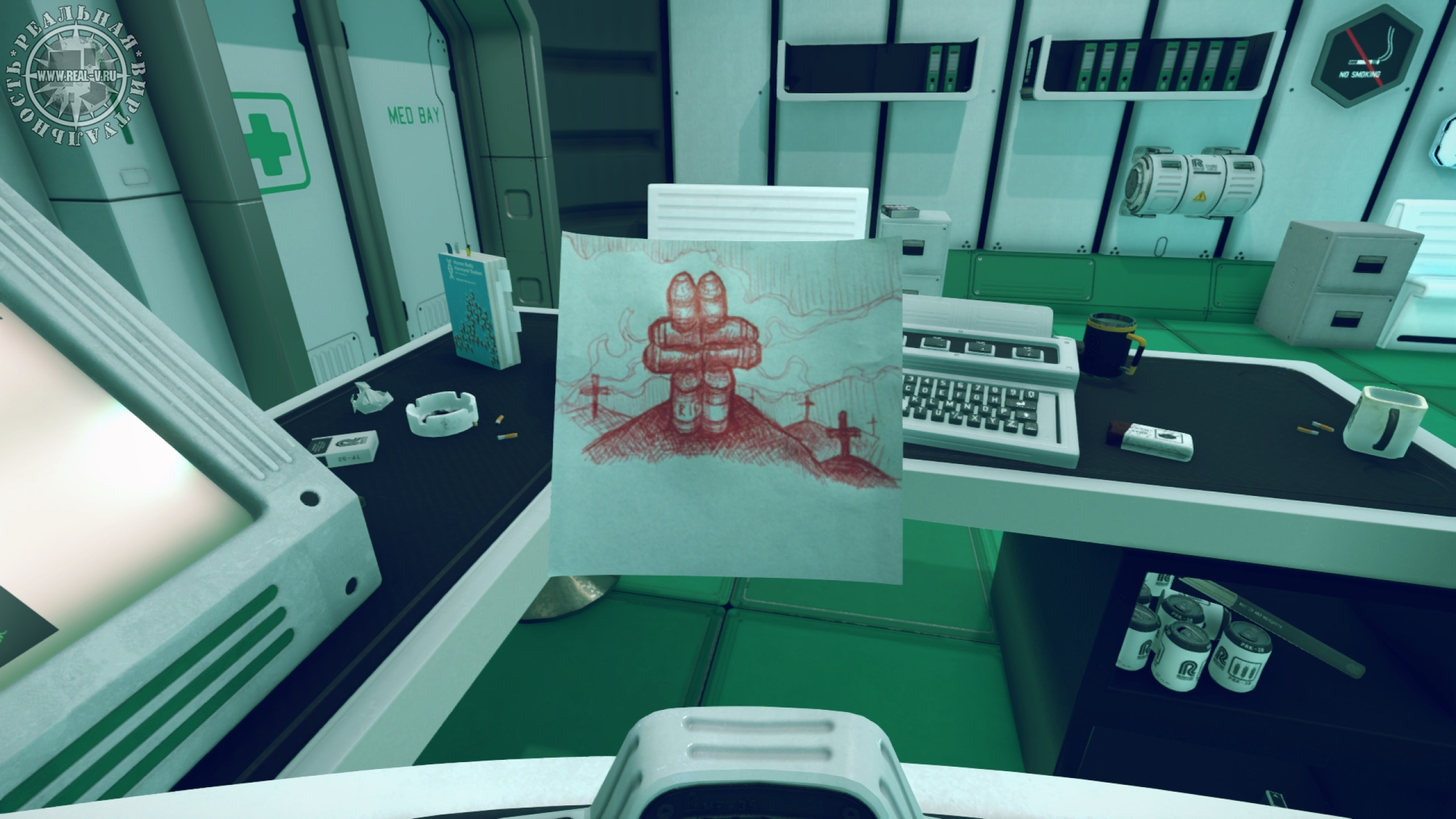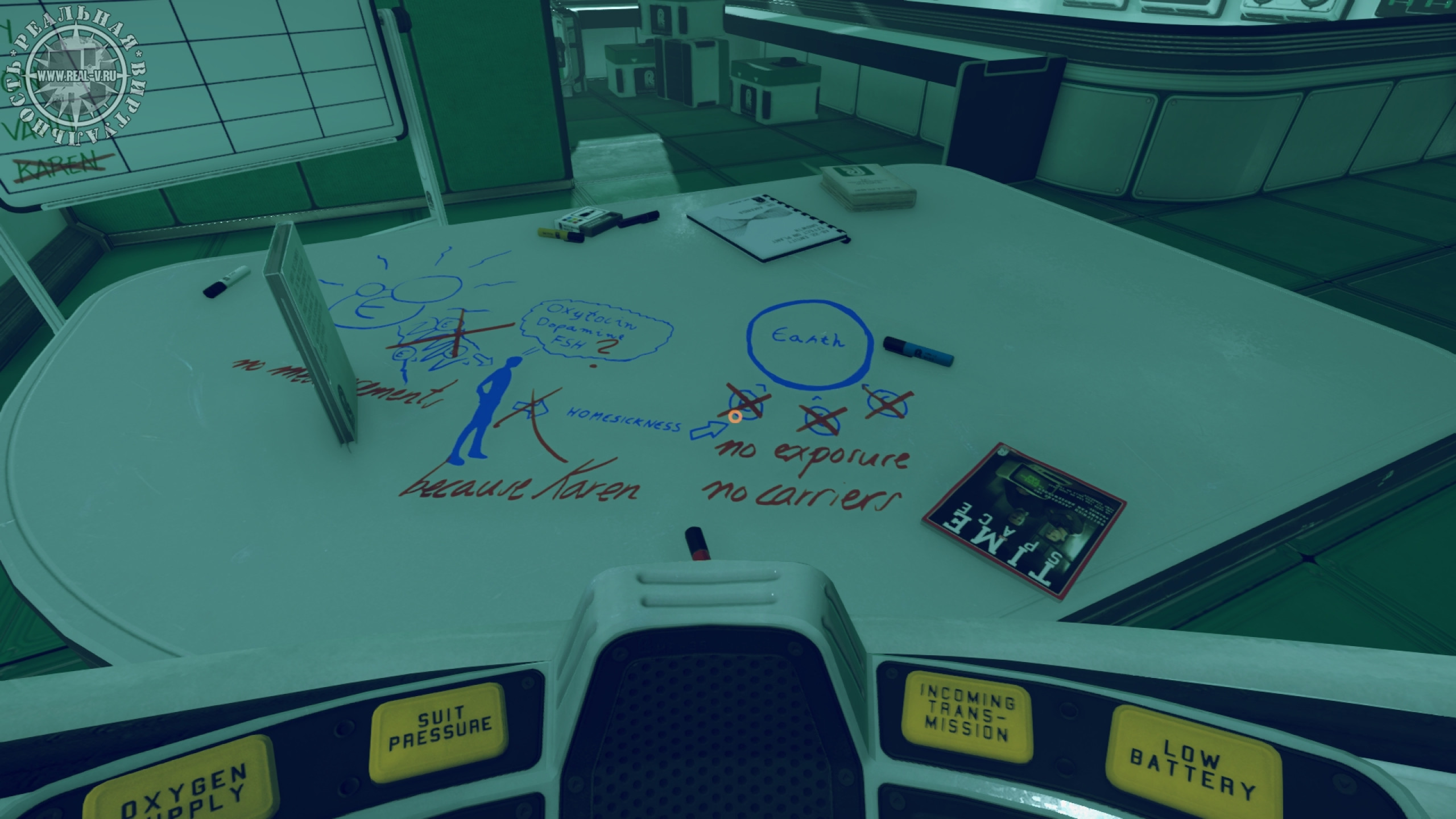 В качестве развлечения есть баскетбол, дартс, беговая дорожка и автомат с компьютерной игрой, разумеется, про Космос. Только надоедают эти забавы быстро и ставить рекорды в них не возникает никакого желания. Вероятно, комната отдыха была добавлена, чтобы показать жизнь экипажа на станции или же для демонстрации возможностей шлема виртуальной реальности. В любом случае, вряд ли кому-то захочется остаться в ней надолго.