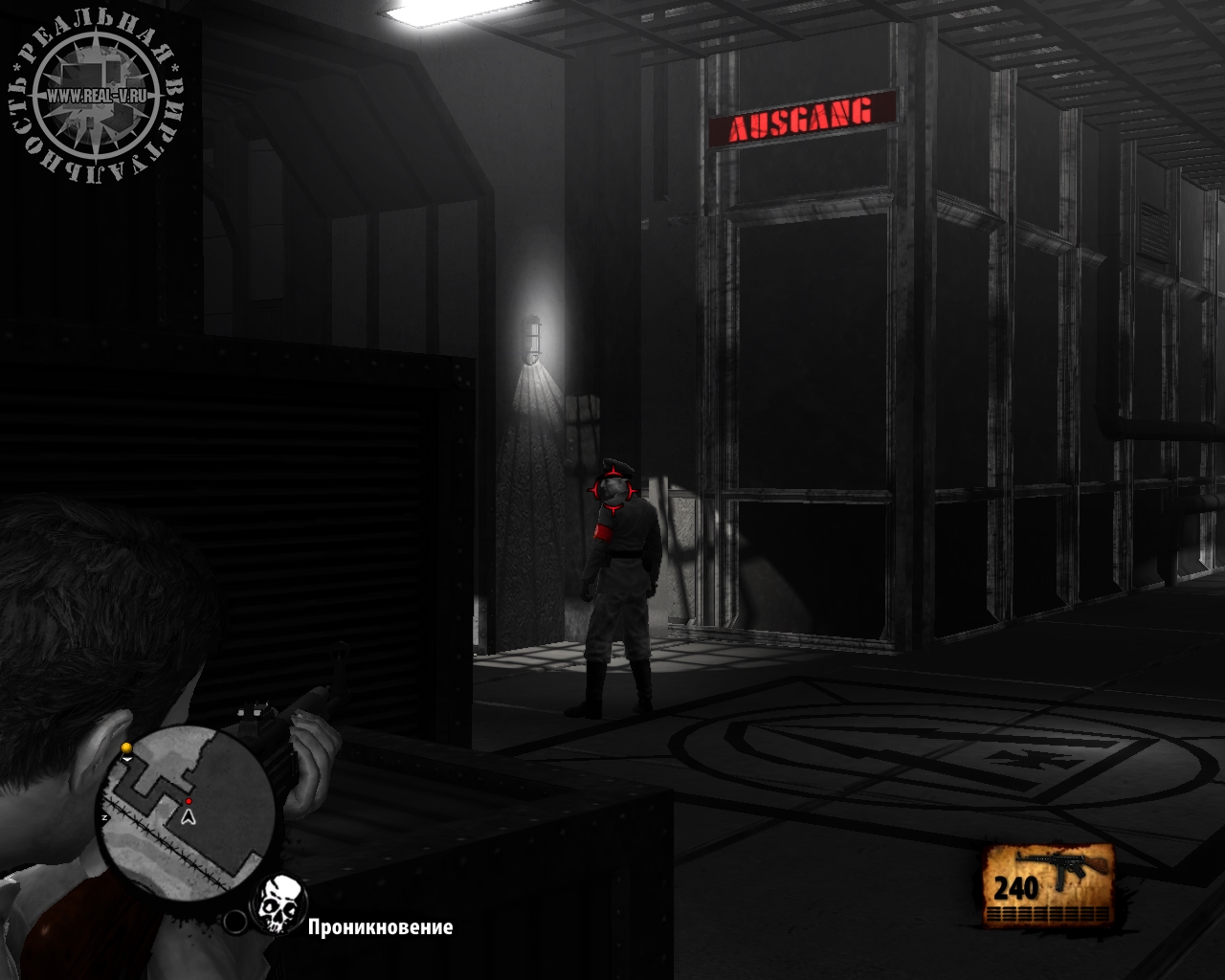 Далее перед нами предстает черно-белый мир, который игрок может "раскрасить" своими действиями. Очистил район от стратегически значимых объектов нацистов – он стал цветным. Помимо появления красок в "очищенных" районах можно рассчитывать на поддержку бойцов Сопротивления и становится проще скрыться от преследования.