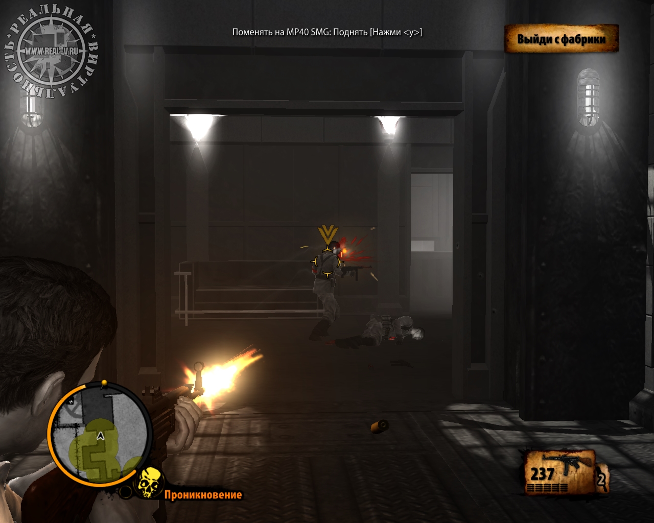 Зато маскироваться Шон не умеет. Девлин одевает только верхнюю часть формы противника, оставляя брюки и ботинки, к тому же про нацистскую повязку он также "забывает". Раскрыть такого "диверсанта" очень легко, однако немцы принимают его "за своего" пока Шон не приблизится к ним вплотную.