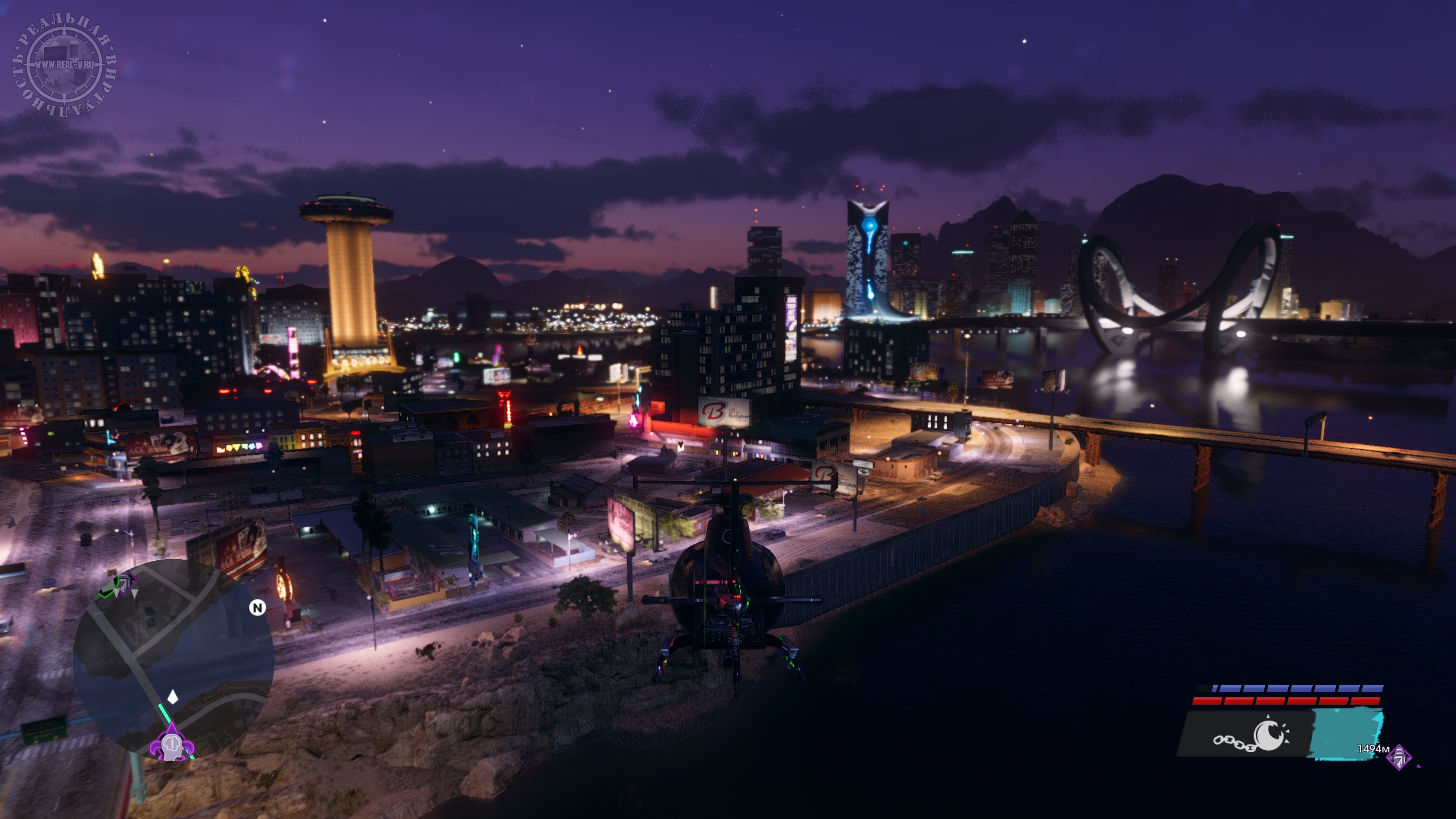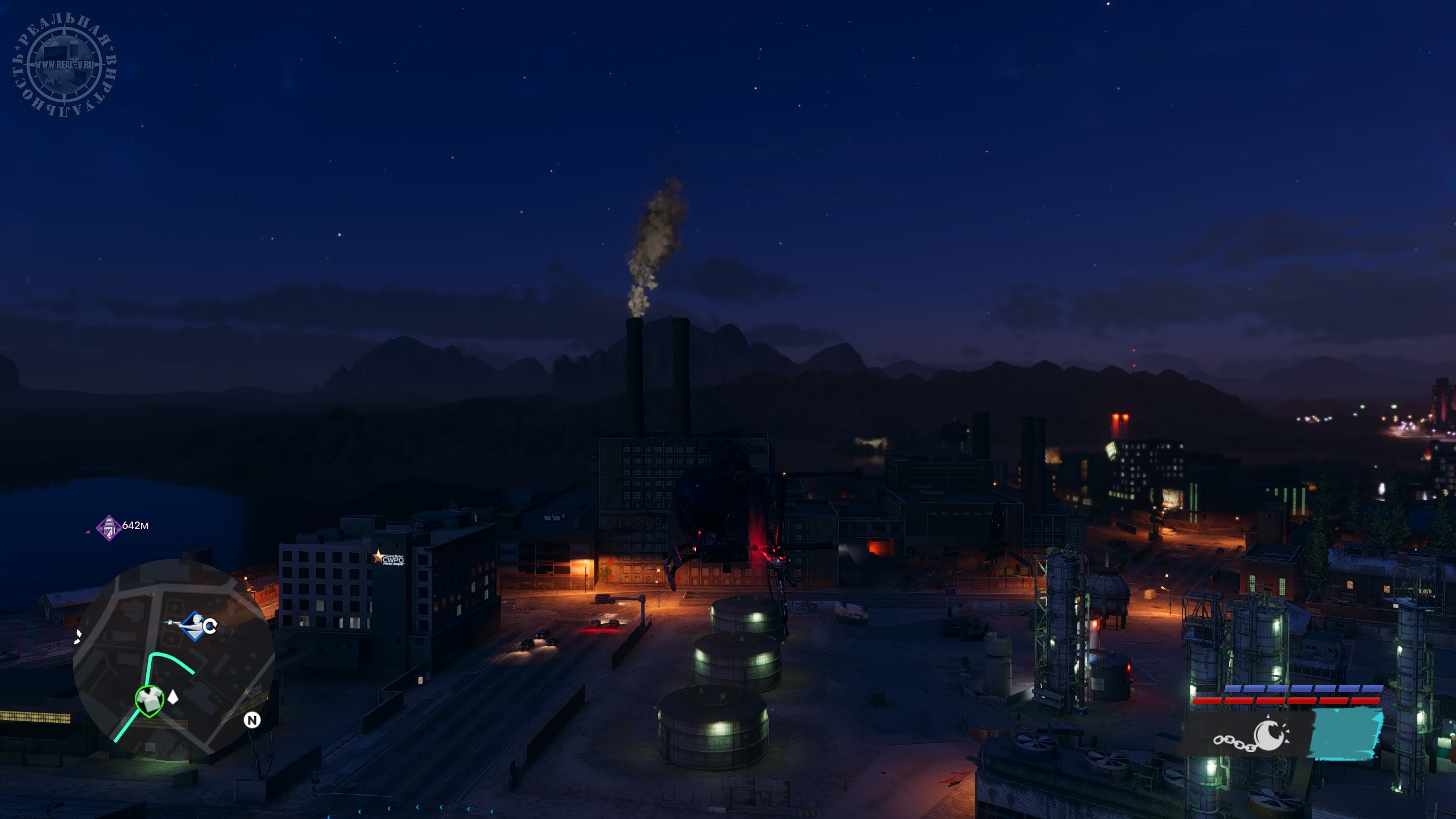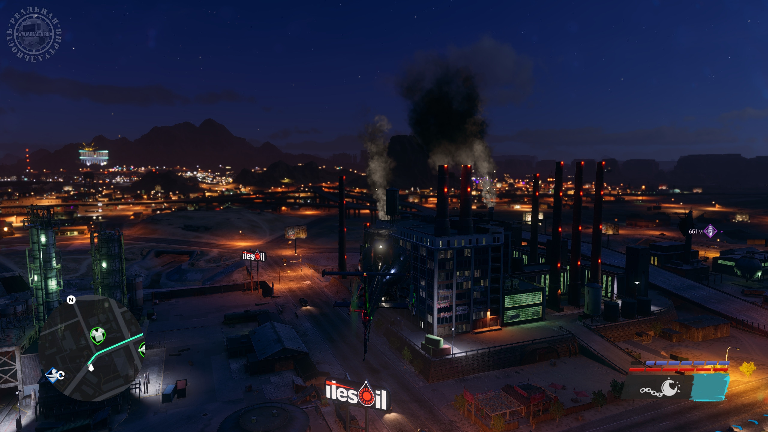 Город разделен на районы типа бедного, заводского, делового, развлекательного, элитного и т.д., а вокруг пустыня, где без внедорожника или вертолета передвигаться затруднительно. Территория Санто-Илесо не сказать, что огромная, но достаточная, чтобы было где покататься или полетать в поисках достопримечательностей. Впрочем, быстрое перемещение тоже доступно, но оно отключается, если взять задание. Еще не хватает такси, которое доставляло бы прямо к нужному месту. Из точек интереса – объекты для фотосъемки, тиры, пилоны с наркотиками, случайные события по уничтожению инкассаторских фургонов или остановки преступлений, чтобы присвоить награбленное, мусорные баки с ценными вещами и автозапчасти. Последние стоит искать, чтобы за нахождение полных наборов заиметь в гараже необычные транспортные средства. Также есть маленькие экскурсионные локации, посещение которых позволит получить призы за прослушивание исторической справки о городе и его знаменитых жителях.