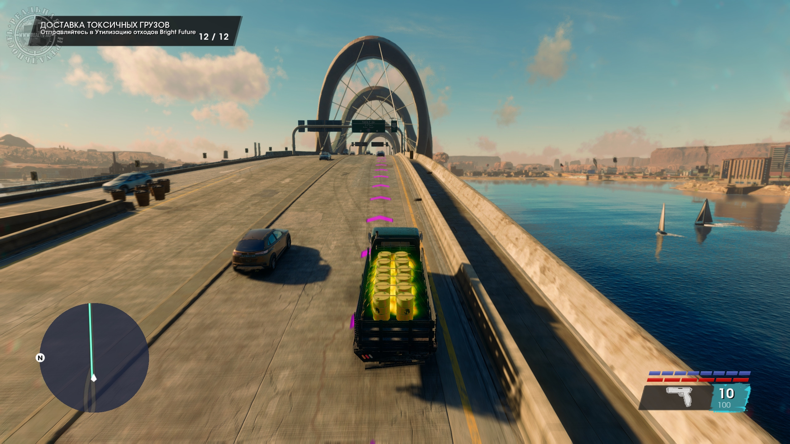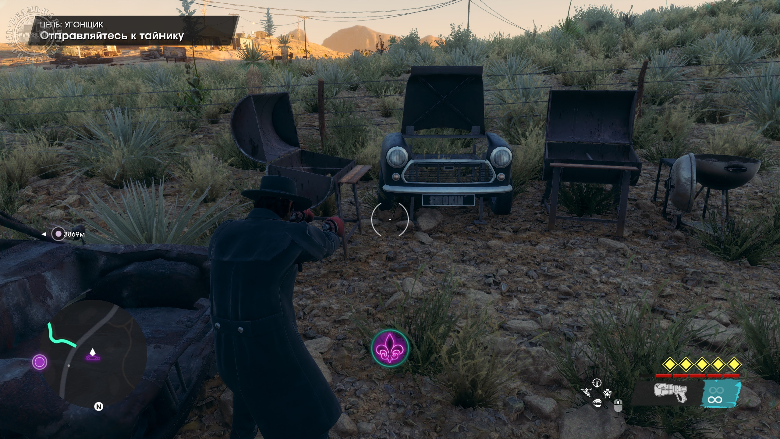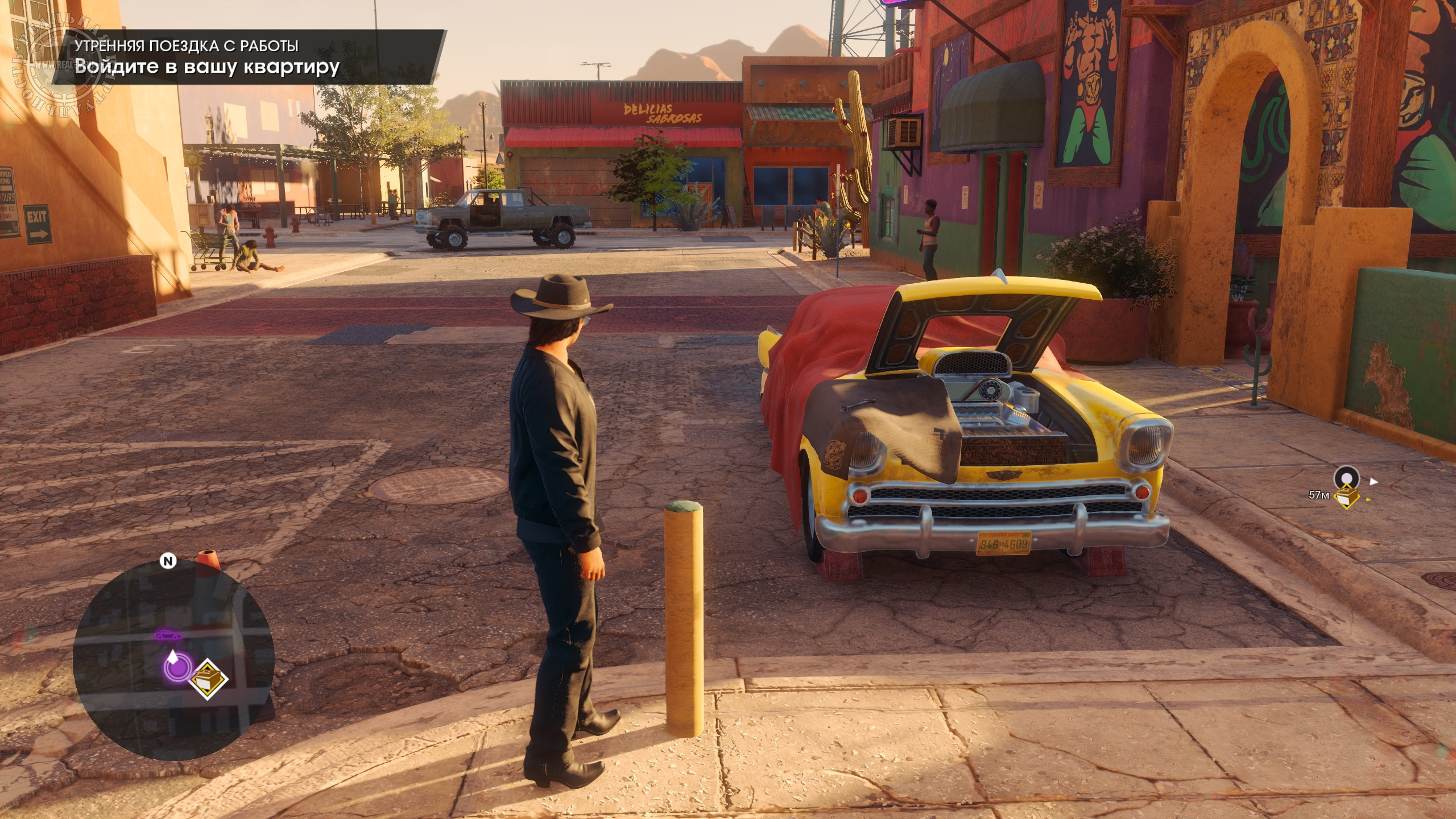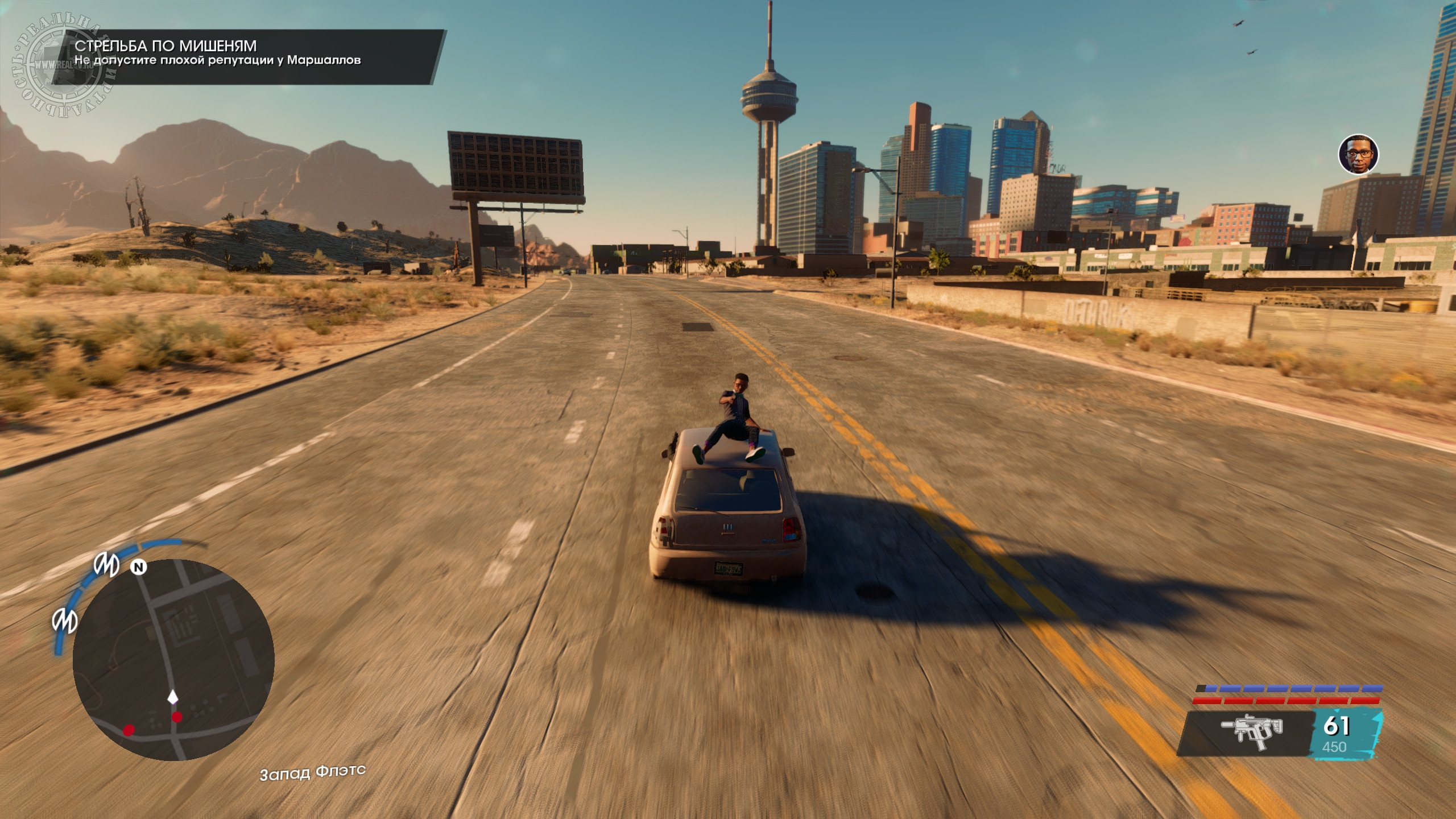 Город разделен на районы типа бедного, заводского, делового, развлекательного, элитного и т.д., а вокруг пустыня, где без внедорожника или вертолета передвигаться затруднительно. Территория Санто-Илесо не сказать, что огромная, но достаточная, чтобы было где покататься или полетать в поисках достопримечательностей. Впрочем, быстрое перемещение тоже доступно, но оно отключается, если взять задание. Еще не хватает такси, которое доставляло бы прямо к нужному месту. Из точек интереса – объекты для фотосъемки, тиры, пилоны с наркотиками, случайные события по уничтожению инкассаторских фургонов или остановки преступлений, чтобы присвоить награбленное, мусорные баки с ценными вещами и автозапчасти. Последние стоит искать, чтобы за нахождение полных наборов заиметь в гараже необычные транспортные средства. Также есть маленькие экскурсионные локации, посещение которых позволит получить призы за прослушивание исторической справки о городе и его знаменитых жителях.