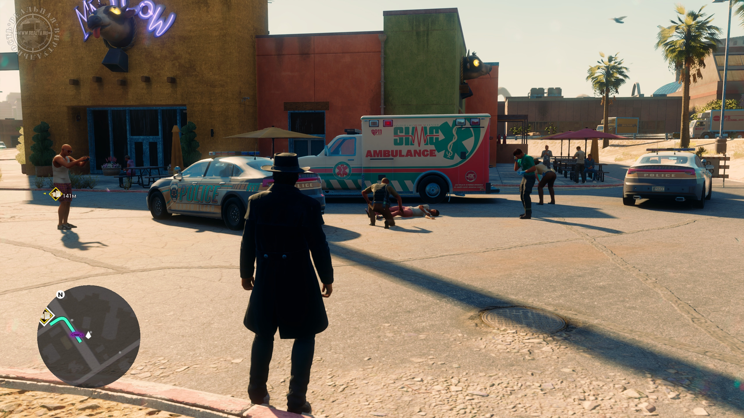 Игра создана на собственном движке студии. Серия никогда не могла похвастаться передовой графикой, перезапуск исключением не стал, но и отторжения картинка не вызывает, несмотря на "замыленные" пейзажи и трассировку лучей, включение которой почти ничего не меняет. Как я уже писал, на релизе у Saints Row были серьезные проблемы с технической частью. Сейчас, после патчей, ситуация получше, но глюки с багами все еще попадаются частенько, и порой спасает только перезапуск игры или загрузка последнего сохранения. Кстати, под сохранения почему-то выделено всего 10 слотов, два из которых – автосейвы. Сброс некоторых настроек также периодически случается, как и вылеты на рабочий стол. Из плюсов стоит отметить детальные настройки сложности с кучей параметров, влияющих на геймплей. Музыкальное сопровождение неплохое, а радиостанции найдутся на любой вкус. В локализации встречаются ошибки, опечатки и путаница с мужским и женским родом, но в целом она приемлемая.