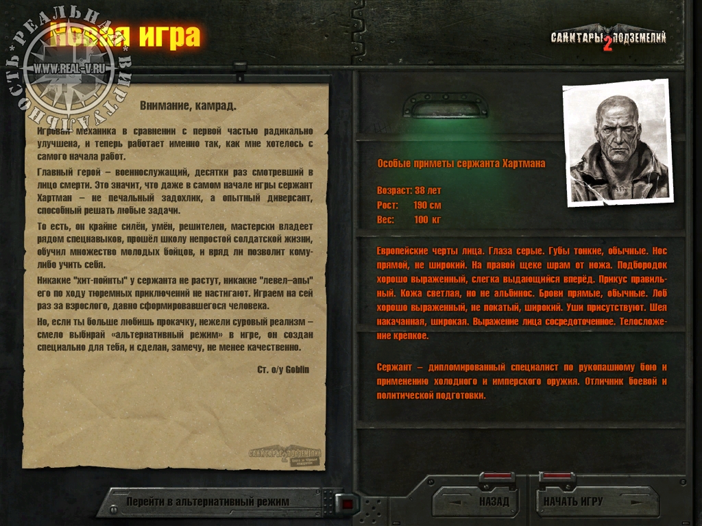Проходить игру можно в двух режимах: "классический" и "гобинский". Первый представляет собой стандартный RPGшный тип игры – выполнять квесты, зарабатывать "опыт", "прокачиваться" и т.п. Режим от "Гоблина" такой возможность не дает. В этом режиме герой уже вполне сформировавшийся десантник-диверсант и изменить его характеристики нельзя. Плюсы и минусы есть у обоих режимов, так что выбор за вами.