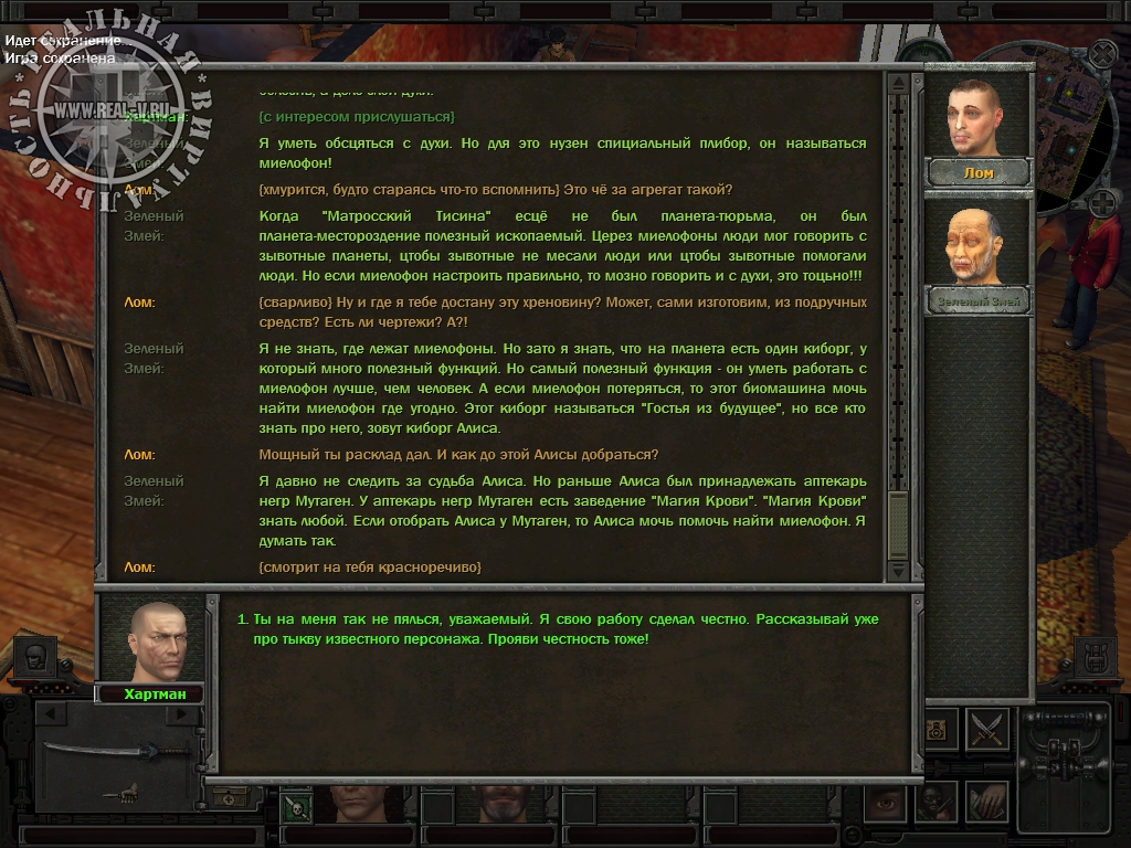 Коротко скажу о населении планеты. Уголовники, полицейские – естественно не слишком приятные персонажи. Негры и китайцы тоже не вызывают симпатии. А вот арийцы наоборот располагают к себе. Как бы ни пытались их "застебать" в игре, на фоне остальных они выглядят очень внушительно. Пожалуй, самый лучший народ на "Матросской Тишине". А судя по развитию сюжета – еще и наиболее технически оснащенный и целеустремленный.