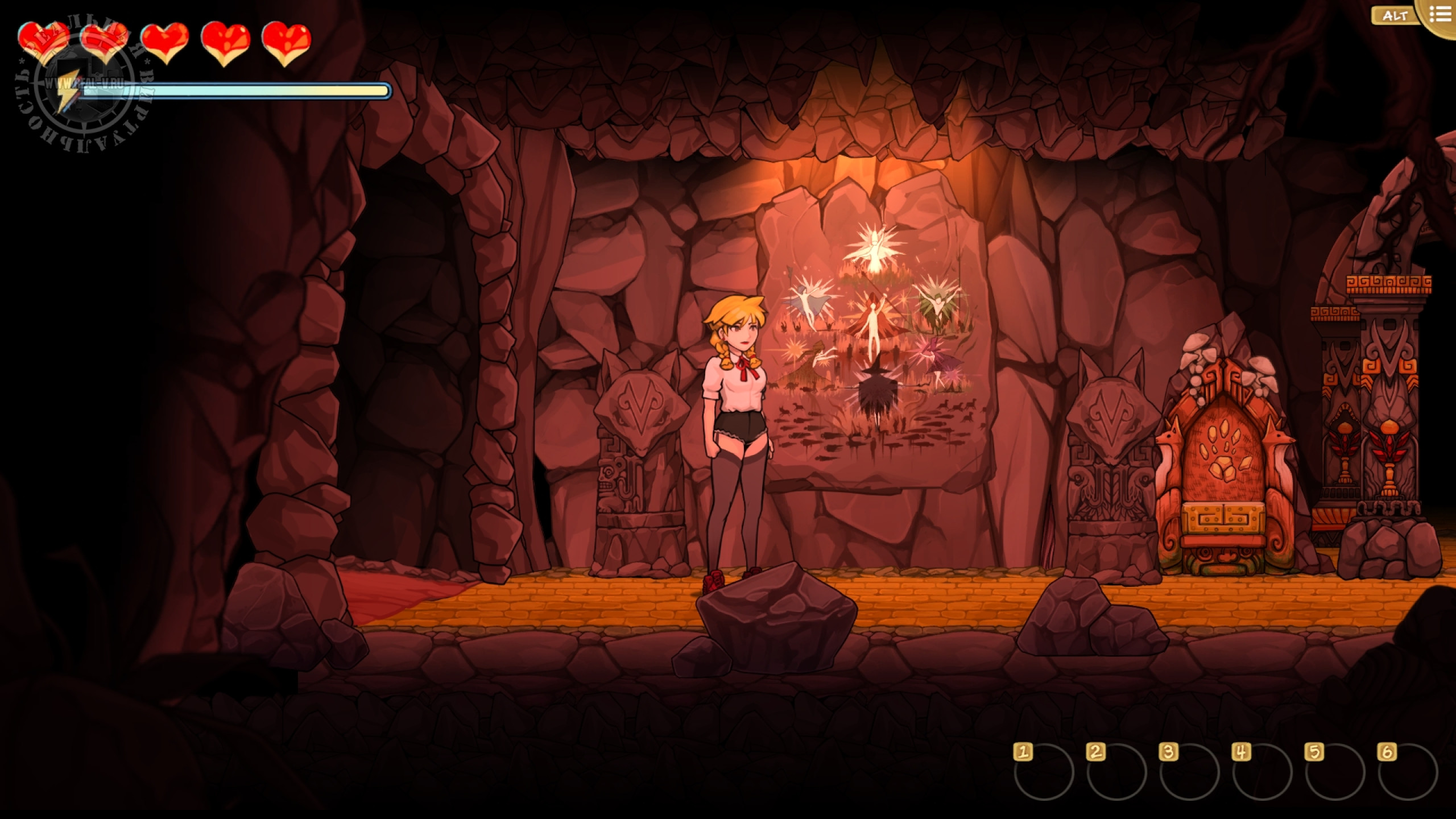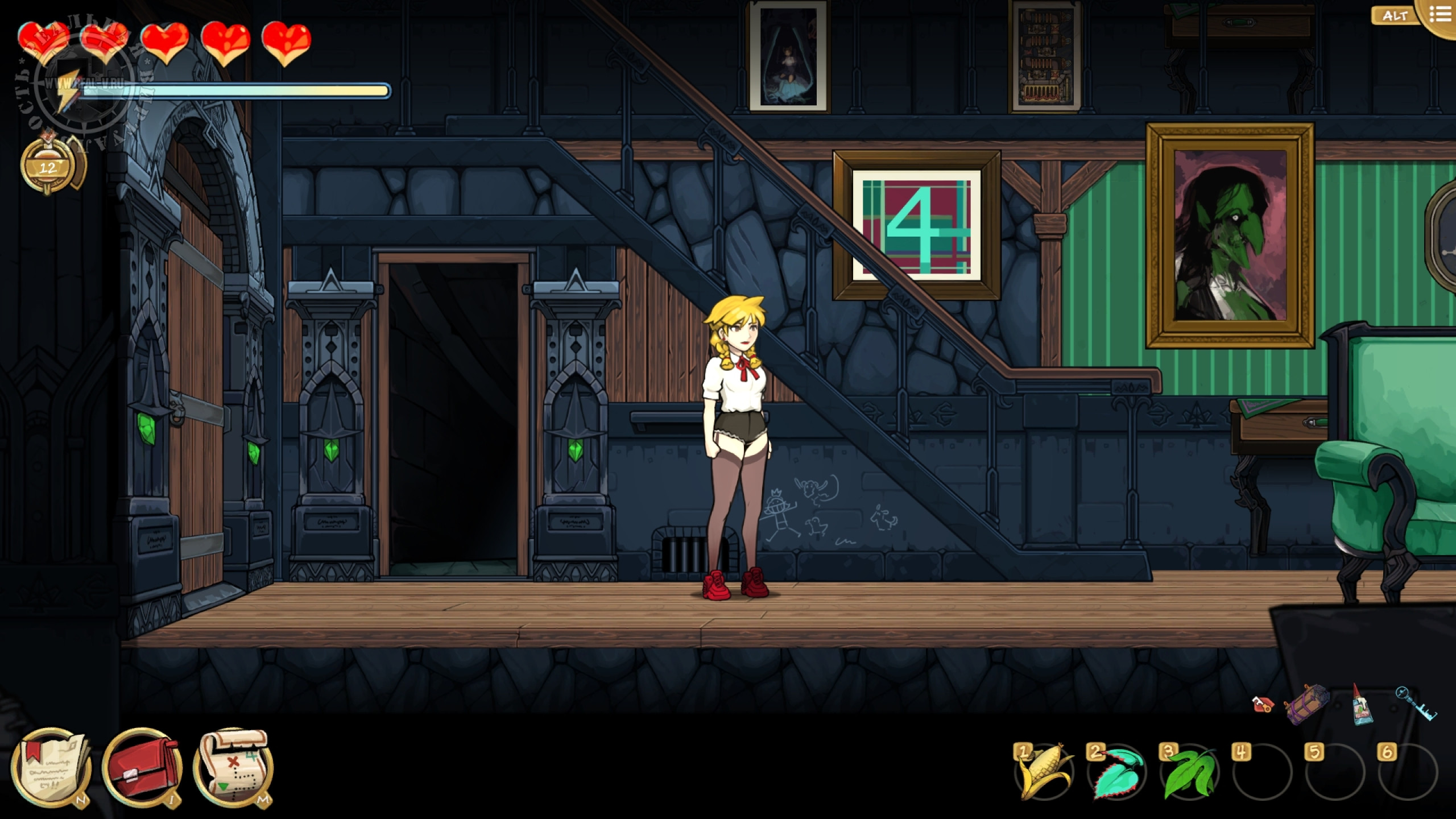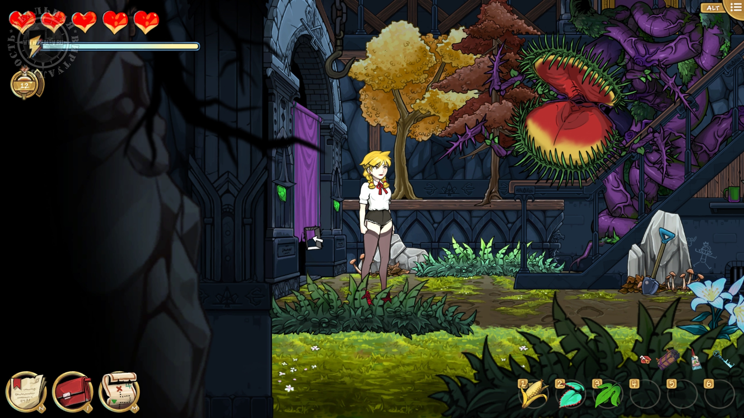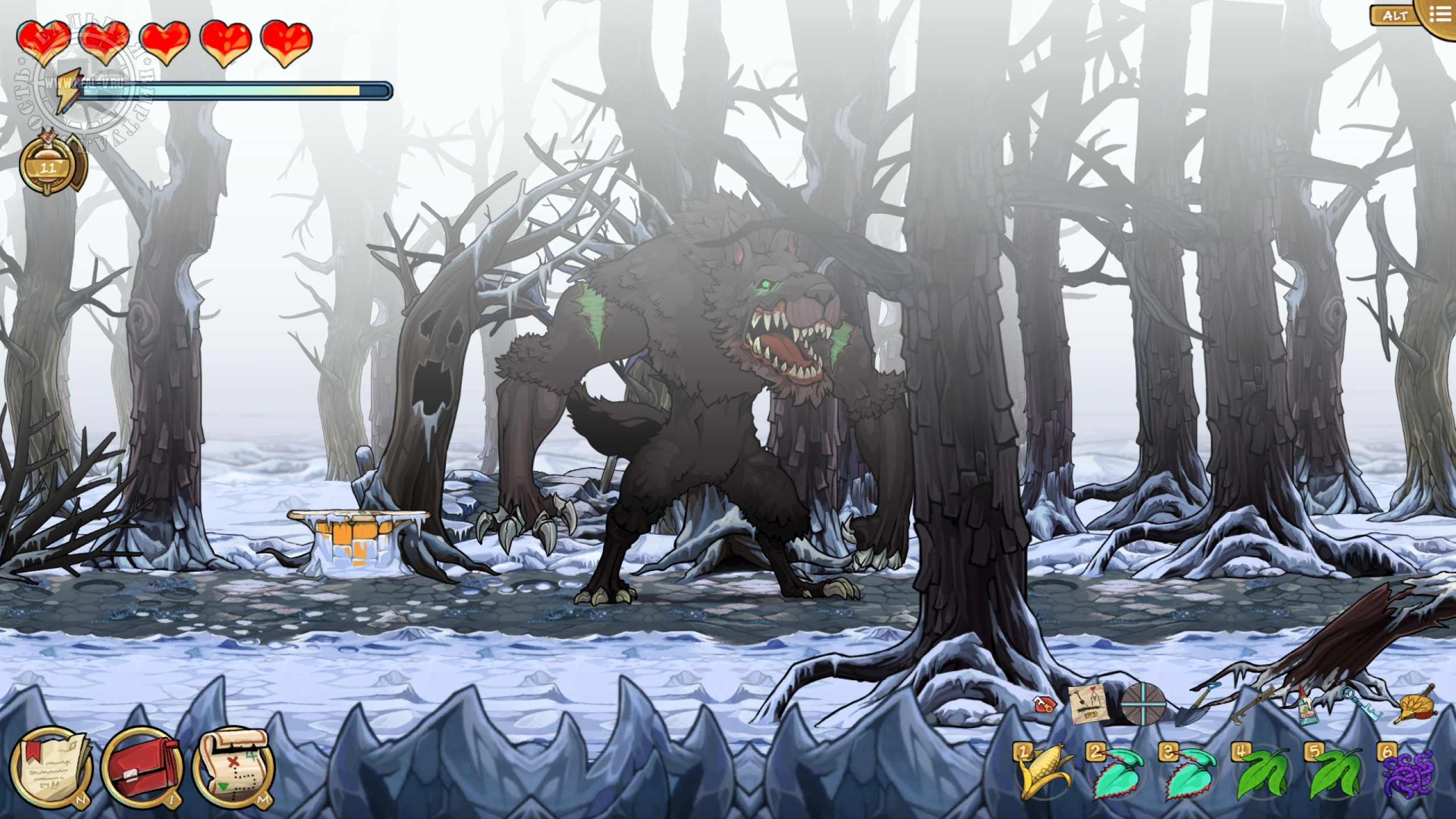 Противники попадаются двух видов: обезьяны Мартышкины, стреляющие ядовитыми дротиками и птицы Додобо, ранящие саблей или копьем. Увернуться от их атак или нанести удар палкой-огревалкой не сложно и этому обучают перед первой попыткой нападения. Куда опасней Волчище – фамильяр Лефабы, который появляется, когда надо выполнить решающий квест на локации. Наверное, это отсылка к "Красной шапочке". Он будет преследовать главную героиню и наносить повреждения, ощутимо снижающие здоровье, но от него можно замаскироваться. Различные снадобья для восстановления самочувствия, выносливости и снятия последствий отравления покупаются у торговца за местную валюту – гульдены, либо находятся на территории, недостатка в деньгах или растениях нет.