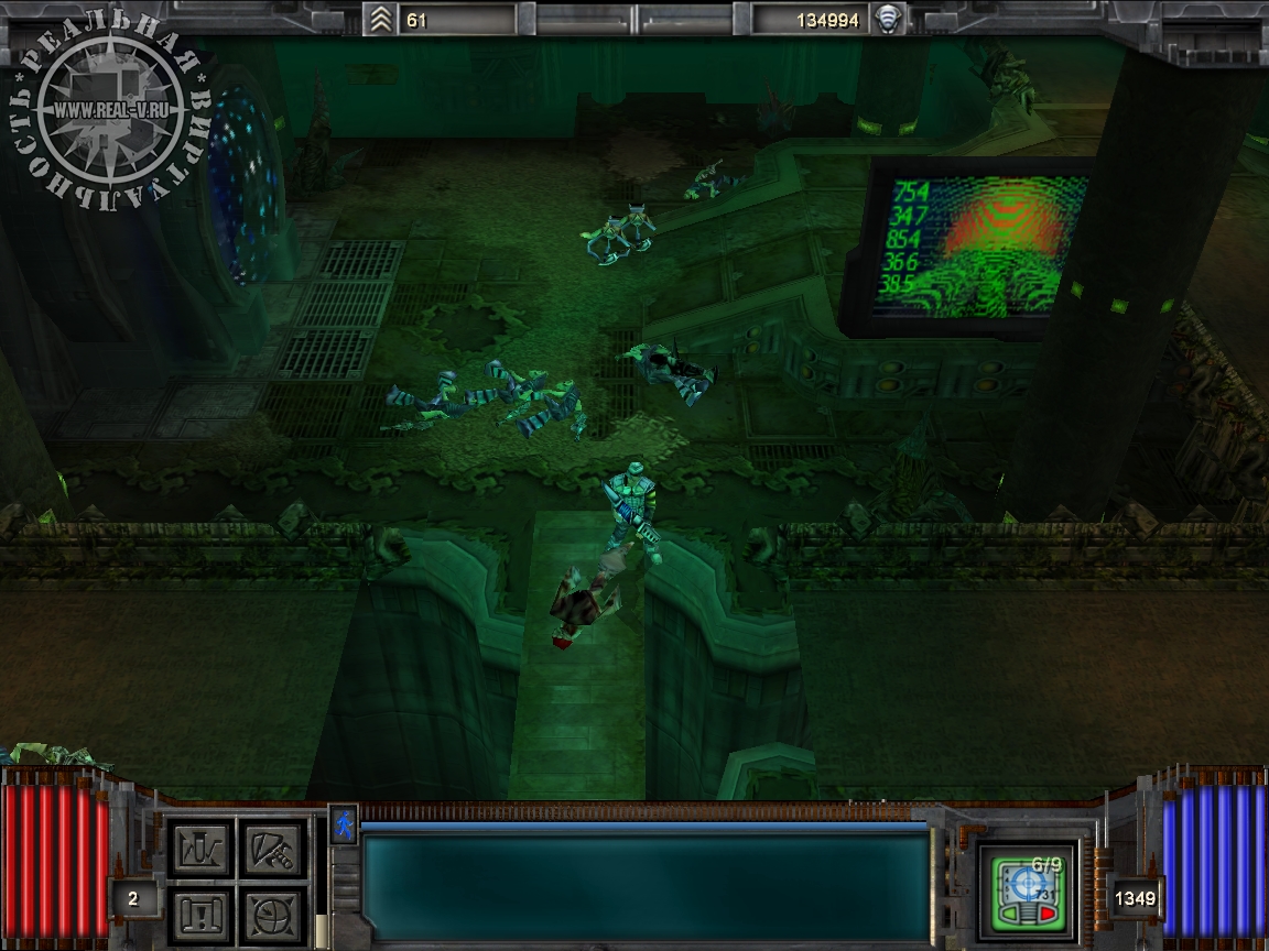В игре 15 сфер, каждая из которых делится на 2-3 зоны. Переход между зонами осуществляется посредством порталов. Интересных миссий в Space Hack я не встречал. Практически весь игровой процесс сводится либо к банальному уничтожению монстров (на каждой зоне их от 150 до 450), либо поиску артефактов (монстры уничтожаются во время поисков). Помимо инопланетян Волка ожидают еще и роботы. Но враг в любом случае берет количеством, пусть иногда у киборгов и встречается защита от того или иного типа энергетического оружия.