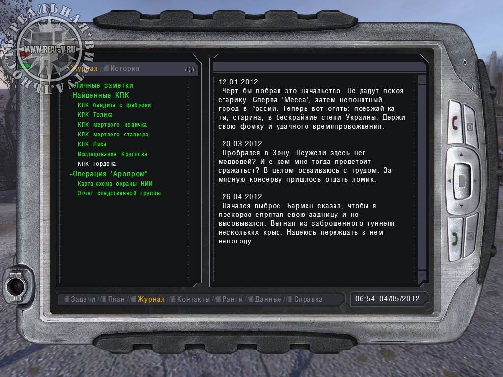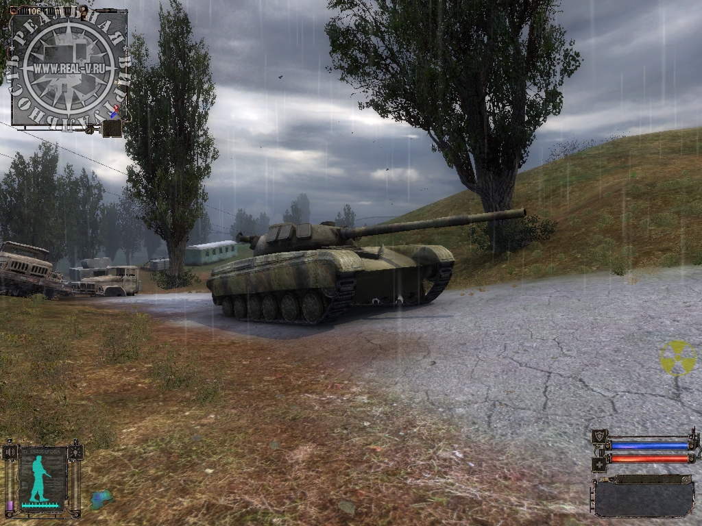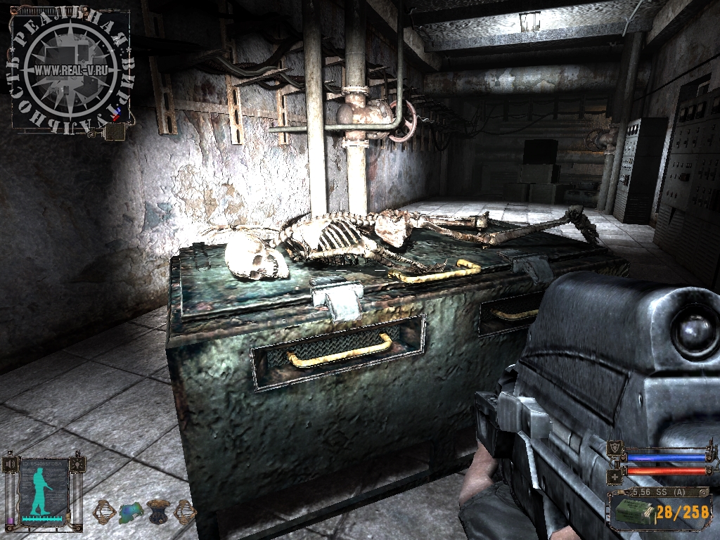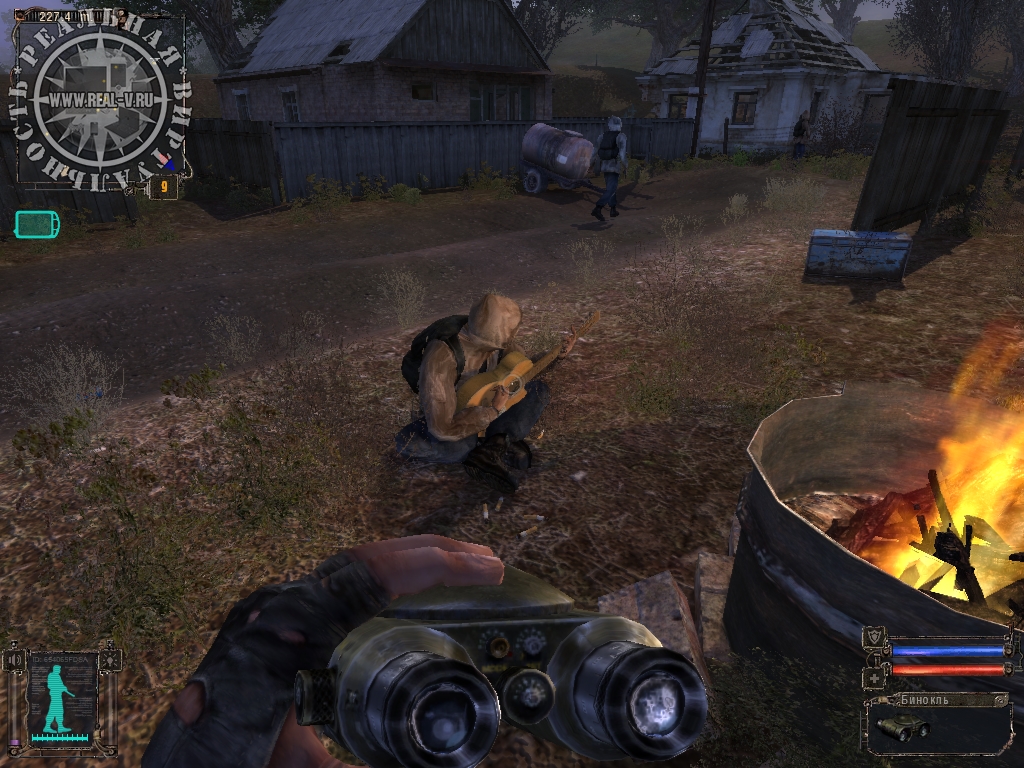 Создатели игры постарались сделать жизнь сталкера как можно более реалистичной. Задумка очень хорошая, но реализована была далеко не полностью. Например, Меченый должен периодически есть, но никогда не спит. Как я не пытался – найти место для сна так и не получилось. А ведь это могла бы быть замечательная возможность восстановить силы или просто переждать до утра. Женщин в Зоне я также не смог найти, что кажется немного странным. Зато смена времени суток и погоды сделана отлично. Впрочем, посиделки сталкеров с гитарой у костра тоже впечатляют.