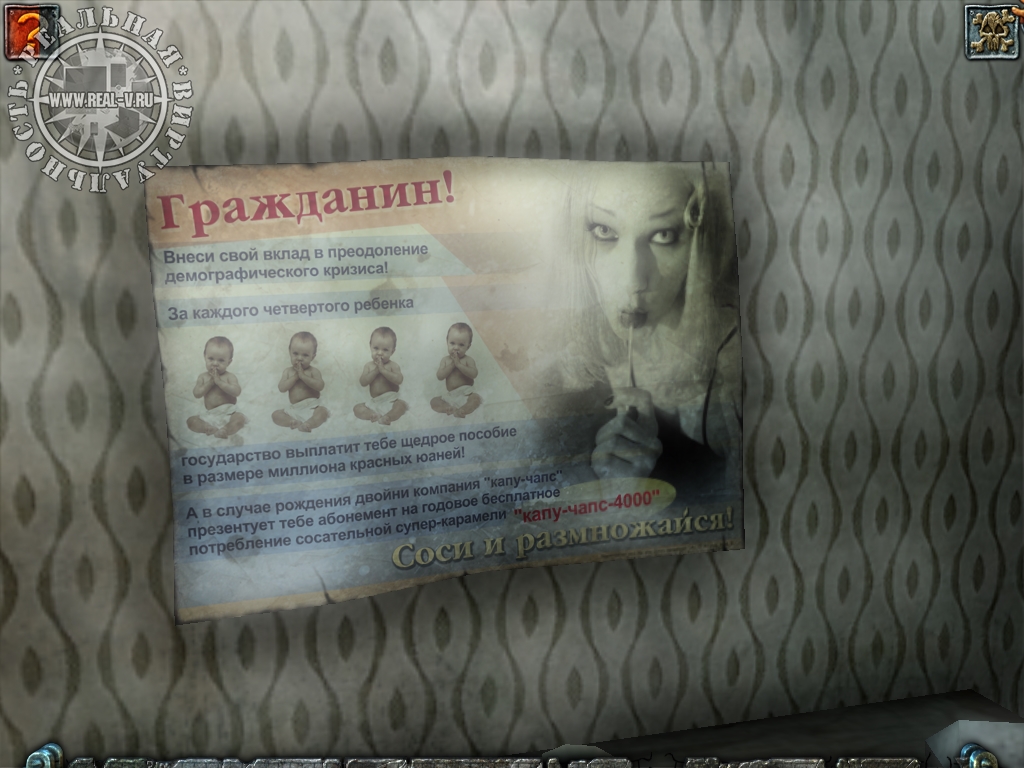 Персонажи игры вполне узнаваемы. Тут и Путин (Мишкин) с клоном, и Григорий Явлинский (Белинский) с непонятными программами, даже Ленин (почему-то похожий на Сухорукова в образе) присутствует.