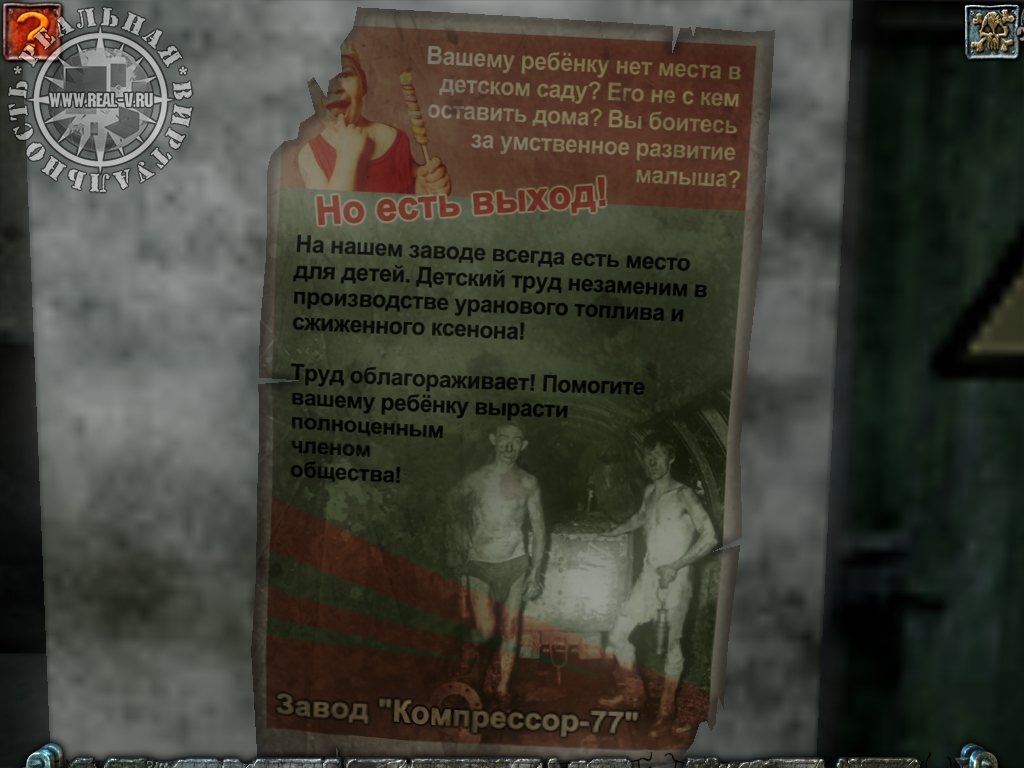 Графика в игре отстала на несколько лет, да и музыка практически на всех локациях одна и та же. Автомобилей, кроме "Запорожца" Никиты, почти нет. Улицы пусты. Все предметы в поле видимости, но не все можно сразу взять.
